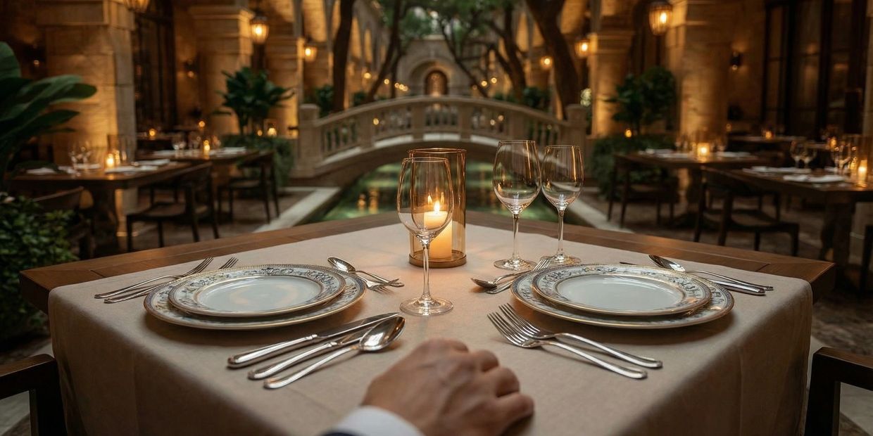 A fine dining concept inspired by Venetian urban spaces, transforming an interior into a layered architectural experience shaped by water, light, and ritual.